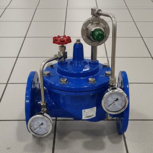 Dòng van giảm áp Shinyi này thuộc kiểu van điều khiển thủy lực, vận hành hoàn toàn dựa trên áp lực dòng chảy mà không cần nguồn điện hỗ trợ.