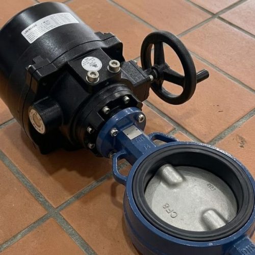 Shinyi WEOM DN250 là tổ hợp giữa van bướm kẹp wafer với bộ truyền động lắp trên ống DN250
