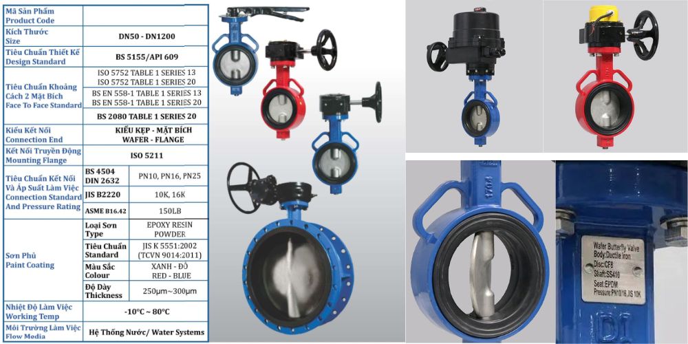 - Van sử dụng kiểu kết nối kẹp wafer hoặc mặt bích