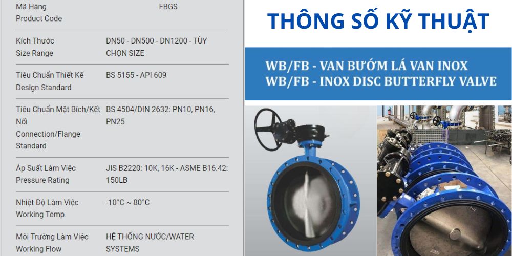 - Tiêu chuẩn kết nối BS 4504, DIN 2632/3, JIS B2220 hoặc ASME B16.42